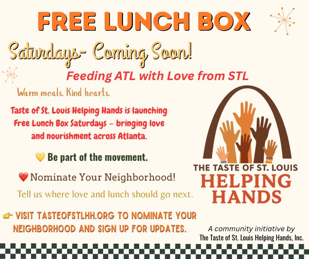 Taste of STL Helping Hands is launching Free Lunch Box Saturdays, a monthly outreach dedicated to feeding underserved communities with love and comfort — one meal at a time. ❤️